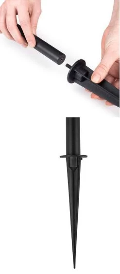 - Geschikt voor wandmontage en kan met de grondspies in de tuin geplaatst worden