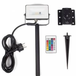 Verlicht je tuin in maar liefst 16 kleuren met de Smartwares FFL-70114 LED RGB schijnwerper met afstandsbediening. De aluminium schijnwerper kan in de tuin gestoken worden met de grondspies of opgehangen worden aan een wand met de muurbeugel.