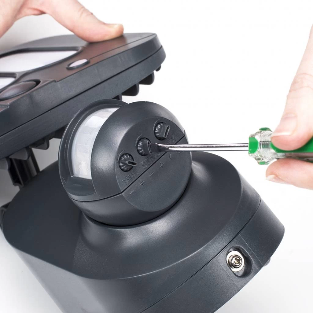 Zorg ervoor dat de lamp snel aanspringt en lang schijnt om indringers weg te jagen, of juist minder gevoelig is en kort schijnt zodat je ’s avonds eenvoudig het sleutelgat kunt vinden. Met de verschillende draaiknoppen kan de gevoeligheid van de sensor ingesteld worden tot maximaal 10 m, de verlichtingsduur van 3 seconden tot 7 minuten en de lichtgevoeligheid. Op deze manier stel je de lamp dus helemaal in naar je eigen voorkeur.