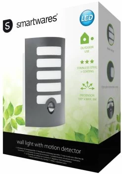 Deze LED geïntegreerde buiten wandlamp (IP44) is gemaakt van roestvrijstaal en uitgevoerd in een donkergrijze kleur. De lamp heeft een bewegingssensor waardoor de lamp aangaat op het moment dat de detectie zone betreed wordt. Deze compacte wandlamp met geïntegreerde leds is met 20 x 15 cm een subtiele toevoeging aan uw gevel of schutting.