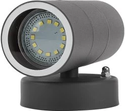 Deze LED outdoor up and down lamp (IP44) is gemaakt van roestvrij staal in de kleur antraciet. De lamp wordt geleverd inclusief hoge kwaliteit, energie besparende LED bulbs (2 x) van 3 W en 3000 K (warm wit).