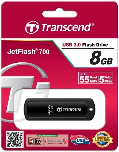 Transcend’s JetFlash 700 USB-stick gebruikt de next-generation USB 3.0 specificatie en levert razendsnelle gegevensoverdracht, waardoor het veel makkelijker en minder tijdrovend is om uw rijke digitale content te beheren. Hij is vervaardigd met een ultrasone lastechniek en beschikt over een stevige structuur, een glad oppervlak en een gestroomlijnde uitstraling. Met de combinatie van snelheid en schoonheid, is de JetFlash 700 een perfect USB 3.0-randapparaat voor gebruikers die een stijlvolle uitstraling met toonaangevende technologie willen combineren.