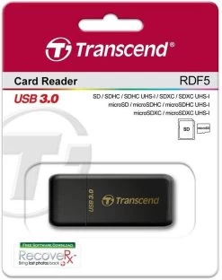 De ultieme oplossing voor professionele fotografen die graag effectief en zonder moeite een groot aantal afbeeldingen en/of data kunnen kopiëren. De RDF5 USB 3.0-kaartlezer beschikt over een SuperSpeed USB 3.0-interface. U kunt deze gemakkelijk en rechtstreeks aansluiten op de USB-poort van elke computer of notebook. Ook USB 2.0 is mogelijk bij de Transcend LED Card Reader.