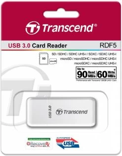 De ultieme oplossing voor professionele fotografen die graag effectief en zonder moeite een groot aantal afbeeldingen en/of data kunnen kopiëren. De RDF5 USB 3.0-kaartlezer beschikt over een SuperSpeed USB 3.0-interface. U kunt deze gemakkelijk en rechtstreeks aansluiten op de USB-poort van elke computer of notebook. Ook USB 2.0 is mogelijk bij de Transcend LED Card Reader.