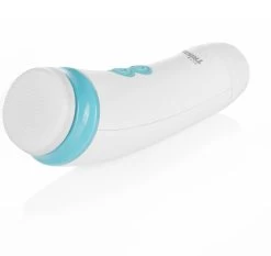 - De gezichtsborstel kan zowel droog als nat, bijvoorbeeld onder de douche, gebruikt worden
