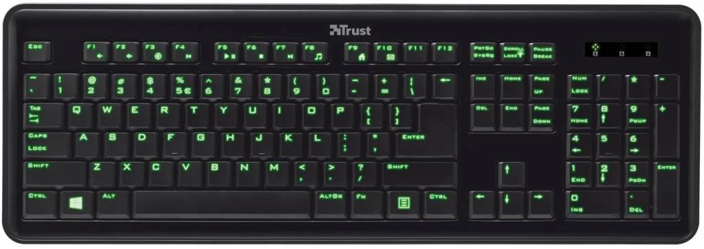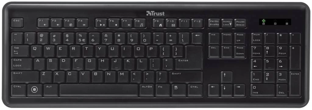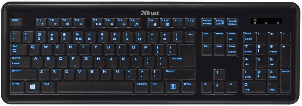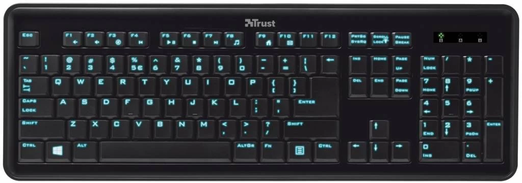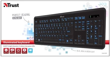 Deze comfortabele Trust eLight Toetsenbord LED Illuminated heeft helder verlichte toetstekens, waardoor de toetsen ook in het donker zeer uitstekend leesbaar zijn. De functietoetsen bevatten 12 handige snelkoppelingen voor directe toegang tot multimediafuncties, Internet Explorer en e-mail. U kunt effectief toetsen op volledige grootte met een gemakkelijke aanslag voor een aangename type-ervaring.