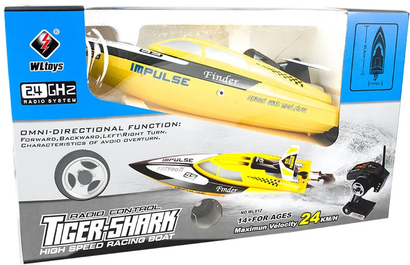 De Wltoys WL912 in het kleur geel is een radiografisch bestuurbare boot waar je snelheden van ongeveer 25 km/h mee kunt behalen. De boot wordt volledig voorgemonteerd geleverd inclusief 2.4GHz zender, accu & lader.