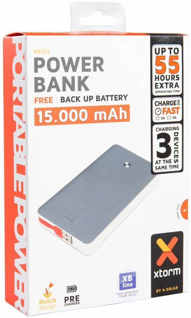 De Powerbank Free 15000 beschikt over een interne li-ion 15000 mAh batterij. Voldoende energie om een tablet volledig op te laden of een smartphone tot wel 7.5 maal opnieuw te voorzien van extra energie!